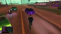 From the objective in flashback sequence, I picked a pill for slow motion and I shot on a random NPC who thrown a grenade. Upon slow motion, a random NPC which is a Grove Street gang member is even thrown a molotov on fire, leading low health. As you can see normally, a player in a normal skin model in-game.
