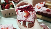This delicious dessert comes together so easily with a box cake mix! In this video, Nicole makes a baked tray of strawberry brownies that achieve melt-in-your-mouth perfection. The moist, tender, and buttery texture of the brownies are only outdone by the freshly mixed strawberry frosting on top.