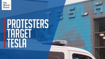Demonstrators in Berlin have spray painted a Tesla dealership with blue paint to protest Elon Musk’s growing influence.<br /><br />In a post by protest group New Generation (Neue Generation) the organisers have said they are protesting the destruction of democracy and the climate by the rich. <br /><br />They have also said they chose the color blue because of its association with German far-right party Alternative for Germany (AfD), who Musk has expressed support for.<br /><br />This is the latest in protests against Musk around the world after Donald Trump’s election in the U.S. Musk’s company, Tesla, has itself suffered a stock market slump after its EU and UK sales fell by almost 50% January.