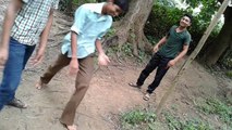 College boys having fun in the park by having a lad on the dangerous chair - funny video