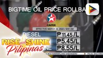 Big-time oil price rollback, epektibo na ngayong araw<br /><br />For more news, visit: <br />►https://www.ptvnews.ph/<br /><br />Subscribe to our DailyMotion Channel:<br />►http://www.dailymotion.com/peoples-television-incorporated<br /><br />Subscribe to our YouTube channel:<br />►http://www.youtube.com/ptvphilippines<br /><br />Like our Facebook pages:<br />►PTV: http://facebook.com/PTVph <br />►Rise and Shine Pilipinas: https://www.facebook.com/riseandshinepilipinas<br /><br />Follow us on Twitter: <br />►http://twitter.com/PTVph<br /><br />Follow us on Instagram:<br />►https://www.instagram.com/ptvph<br /><br />Watch our livestream on: <br />►http://ptvnews.ph/livestream/<br />►https://www.dailymotion.com/PTVPhilippines<br /><br />Watch our News Programs, every Mondays to Fridays<br /><br />Rise and Shine Pilipinas - 6:00 - 7:00 am | 7:30 - 8:00 am<br />Balitang Pambansa - 7:00 - 7:30 am | 12:00 - 12:30 pm |<br />6:00 - 6:30pm | 9:30 - 10:00 pm<br />PTV Sports - 8:00 - 9:00 am<br />Bagong Pilipinas Ngayon - 12:30 - 1:00 pm<br />Sentro Balita - 1:00 pm - 2:00 pm<br />Ulat Bayan - 6:30 pm - 7:00 pm<br />PTV News Tonight - 10:00 pm - 10:30 pm<br /><br />Saturday & Sunday:<br />►Sentro Balita Weekend - 1:30 - 2:00 pm<br />►Ulat Bayan Weekend - 6:15 pm - 7:00 pm