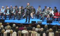 L'hymne à la joie chanté par une chorale d'enfants le 4 juin lors du dernier grand meeting pour les européennes et signature des 7 engagements par les candidats.