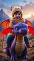 A cheerful toddler riding on the back of a cute purple dragon