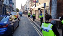 Police in Wolverhampton Street, Dudley, after 'explosion' in shop