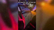 ext-Carro de lujo se le mete al tren y es arrastrado 50 metros en San Pedro-060625