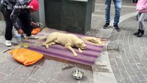 Artist creates realistic-looking dog out of sand in London