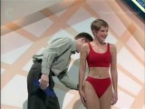 Today's contestants are Christine & Philip Keenan from Staffordshire & London, David Lewis & Sarah Turner from Lancashire, Ben & Tina Bamrar from West Glamorgan, and Patricia & John Foley from Surrey. Bruce Forsyth and assistant Rosemary Ford help the couples through games such as puppetry (with mini Brucie and Rosie dolls), Kilt making, a stick dance of sorts with the First Whitfield Girl Guides, and model making a head of Brucie himself! The final two couples then face off in a Latin Dance play off to see who will play for the conveyor belt of prizes. Enjoy.