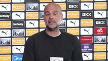 Manchester City boss Pep Guardiola on the fitness of Erling Haaland and Rodri and whether they could play against Wolves<br />Etihad Training Campus, Manchester, UK