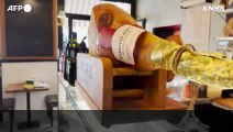 Un cane vestito da Papa attende vicino al Vaticano all'inizio del conclave