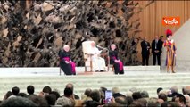 Il lungo applauso per Papa Leone XIV al suo arrivo all'incontro con la stampa internazionale