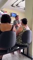 Homem revoltado por falta de água em casa, 'toma banho' em recepção da companhia responsável