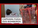 Capivara de 85 kg invade piscina e vídeo mostra resgate inusitado em Niterói