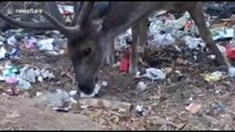 A couple shopping at their local home-improvement store heard noises from inside a pallet wrapped in plastic – before opening it and discovering a kitten trapped inside. Shelby Elko, 29, and husband Alex, 32, from Grand Rapids, Michigan, were browsing the garden section of the local store on April 26 when they heard a noise, which they both thought could be a bird. Having heard the noise again, the couple started looking for where the sound was coming from, tracing it to a plastic wrapped pallet of lava rock bags. Shelby tried her best to reach the noise, but after failing to get high enough, she called on Alex to jump up while she captured the moment on video. In the stunning footage, Alex can be seen ripping a hole in the plastic wrap, which then caused a kitten to fall out onto a sack below.