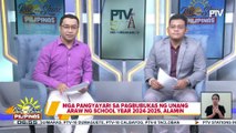 Pagbubukas ng school year 2025-2026 sa June 16, walang inaasahang brownout<br /><br />For more news, visit: <br />►https://www.ptvnews.ph/<br /><br />Subscribe to our DailyMotion Channel:<br />►http://www.dailymotion.com/peoples-television-incorporated<br /><br />Subscribe to our YouTube channel:<br />►http://www.youtube.com/ptvphilippines<br /><br />Like our Facebook pages:<br />►PTV: http://facebook.com/PTVph <br />►Rise and Shine Pilipinas: https://www.facebook.com/riseandshinepilipinas<br /><br />Follow us on Twitter: <br />►http://twitter.com/PTVph<br /><br />Follow us on Instagram:<br />►https://www.instagram.com/ptvph<br /><br />Watch our livestream on: <br />►http://ptvnews.ph/livestream/<br />►https://www.dailymotion.com/PTVPhilippines<br /><br />Watch our News Programs, every Mondays to Fridays<br /><br />Rise and Shine Pilipinas - 6:00 - 7:00 am | 7:30 - 8:00 am<br />Balitang Pambansa - 7:00 - 7:30 am | 12:00 - 12:30 pm |<br />6:00 - 6:30pm | 9:30 - 10:00 pm<br />PTV Sports - 8:00 - 9:00 am<br />Bagong Pilipinas Ngayon - 12:30 - 1:00 pm<br />Sentro Balita - 1:00 pm - 2:00 pm<br />Ulat Bayan - 6:30 pm - 7:00 pm<br />PTV News Tonight - 10:00 pm - 10:30 pm<br /><br />Saturday & Sunday:<br />►Sentro Balita Weekend - 1:30 - 2:00 pm<br />►Ulat Bayan Weekend - 6:15 pm - 7:00 pm