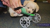 The puppy Bella tumbled over every time the man set her straight.<br />No matter how gently he positioned her, Bella kept losing balance.