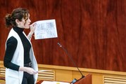 Ovación a Ayuso tras achacar a Mónica García "el suelo de más que cobró de esta Cámara"