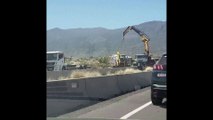 VÍDEO: un neumático suelto provoca varios accidentes en cadena, camión volcado incluido