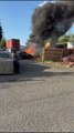 Watch as thick smoke billows into the air from a shop fire in Northamptonshire, as the fire service advises locals to keep windows closed.