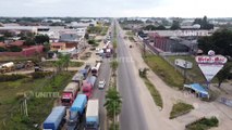 Km 9 al norte, fila de camiones en la zona por la jornada de Paro en Santa Cruz