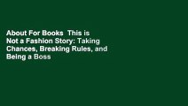 About For Books This is Not a Fashion Story: Taking Chances, Breaking Rules, and Being a Boss in