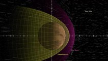 For two days in the December the solar wind suddenly stop on Mars and its atmosphere on the sun-facing side swelled "by nearly four times its usual size — from its usual 497 miles (800 km) to over 1,864 miles (3,000 km)".<br /><br />Credit: NASA Goddard Space Flight Center