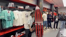L’arrivo di Rafa Leao all’evento per Diesel in San Babila a Milano. Un gruppetto di tifosi fuori dallo store ad aspettarlo, qua e là sbuca qualcuno con la sua dieci rossonera. Il portoghese sorride, concede autografi e foto ai presenti.