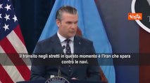 Il segretario della difesa Usa, Hegseth: «L'unica cosa che impedisce il transito negli Stretti è che l'Iran spara contro le navi»
