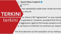 Menteri Luar Iran Abbas Aragchi berkata tiada sebarang perjanjian gencatan senjata di antara Iran dan Israel serta sekutunya Amerika Syarikat, ia susulan pengumuman Presiden AS Donald Trump mengenai kedua-dua pihak bersetuju mengadakan gencatan senjata.