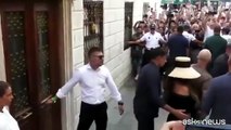 Venezia, 28 giu. (askanews) - Il fondatore di Amazon Jeff Bezos e la giornalista Lauren Sanchez escono dal famoso Harry's bar di Venezia, un locale reso celebre dalla frequentazione di grandi personalità come Ernest Hemingway, Charlie Chaplin e Peggy Guggenheim. La coppia, sposata di fresco con una cerimonia con oltre 200 invitati vip sull'isola di San Giorgio, si prepara all'ultima giornata di festeggiamenti all'Arsenale con un galà di ballo.