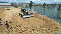 Best Project Filling Big Lake Updating by Amazing Bulldozer SHANTUI Pushing Soil Stone Refill Lake