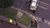 Aerials of police presence and mourners in Leigh-on-Sea
