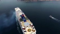 Cruise Ship at Harbour Stunning Aerial View of Port and Sea Waves