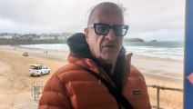 Prince William talks to RNLI lifeguards at Fistral Beach