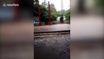 A powerful rainstorm struck Xiamen in Fujian Province, China today, bringing intense downpours and widespread waterlogging across the city. Streets turned into rivers as vehicles struggled to move through the flooded roads. The sudden deluge disrupted daily life, causing delays in transportation and raising concerns about flash flooding in low-lying areas. Authorities are closely monitoring the situation and have urged residents to stay indoors and avoid unnecessary travel. <br />