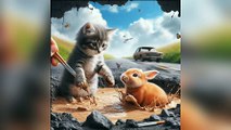 Rabbit Helps Injured Kitten After Accident | Cute Bunny & Cat Rescue 2025