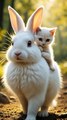 Cat And Rabbit, kitten and bunny friends