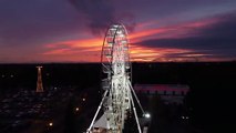 Drone footage shows a large fire in a Scottish town centre, where emergency services are in attendance.