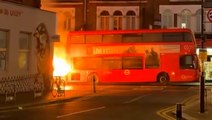 Hope has provided WooGlobe with gripping footage of an incident that occurred in May 2025.<br /><br />"This bus was pulled over shortly before it caught on fire, as the engine was sparking, and I took a video of it," Hope told WooGlobe. <br /><br />Thankfully, all passengers riding the double-decker bus were evacuated before the situation got out of control. <br /><br />This video shows the abandoned vehicle engulfed in flames. <br /><br />Shortly after the incident was reported, an investigation into its cause was launched.<br />WooGlobe Ref : WGA832981<br />For licensing and to use this video, please email licensing@wooglobe.com
