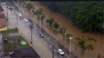 Rio Cachoeira transborda e alaga avenida central de Joinville