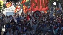 Brasilia, 7 ago. (askanews) - I popoli indigeni, ma soprattutto le donne, marciano a Brasilia per chiedere azioni per la giustizia climatica in Brasile, mentre il Paese si prepara a ospitare il vertice sul clima COP30 a novembre. Con abiti e acconciature tradizionali le donne tengono cartelli con la scritta "guardiani del pianeta".
