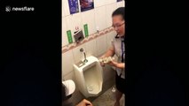 Chinese employee devours food from urinal to prove how clean it is