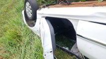 Peugeot com quatro ocupantes capota na BR-277, entre Cascavel e Santa Tereza do Oeste