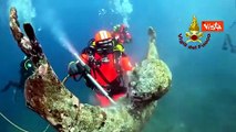 Liguria, sub ripuliscono la statua sommersa del Cristo degli Abissi