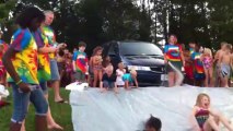 WOMAN TRIES SOAPY SIDEWALK STUNT AND FLOPS<br /> <br />WITH VID<br />By Tim Tong<br /> <br />Watch as what started as a fun water slide challenge ended in a painful but hilarious fall.<br /> <br />Edith Garcia, from Tamaulipas, Mexico took the video of Karla Mendiola, who decided to join in after watching her son and his friends attempt a soapy sidewalk slide.<br /> <br />With soap poured onto the wet pavement, it looked like the perfect setup for some slippery fun.<br /> <br />But when Karla took a running start and launched herself forward, the plan went sideways. Instead of gliding smoothly, she landed flat on the ground and didn’t slide an inch leaving her neighbours in stitches.<br /> <br />Posted on TikTok, the post gathered more than 5 million views, with many viewers sharing this hilarious family moment.<br /> <br />Karla said: “One day I’m trying to be a cool mom and do some sliding with them and made complete fool of myself.”<br />ENDS
