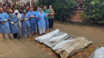 La preghiera davanti ai corpi delle vittime dei raid israeliani