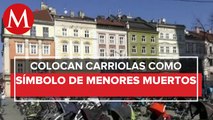 Colocan carriolas en las calles de Ucrania a manera de protesta
