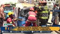 Mototaxista queda atrapado tras chocar contra una camioneta en Comas: “le fallaron los frenos”