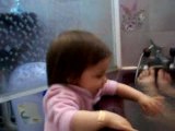 Louloute joue avec la bassine d'eau