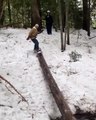 Cute Chinese Girl Sketting On The Ice At Winter
