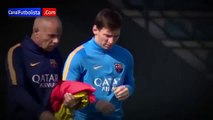 Neymar se atreve a desafiar a Messi en el entrenamiento del Barcelona • 2015